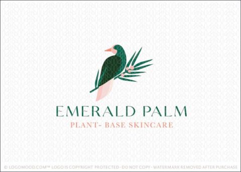 Elegant and modern tropical birds perch on a tropical palm frond leaf. Emerald green and pink shades are used to create a modern and sophisticated look. (tropical, jungle, bird, palm, …
